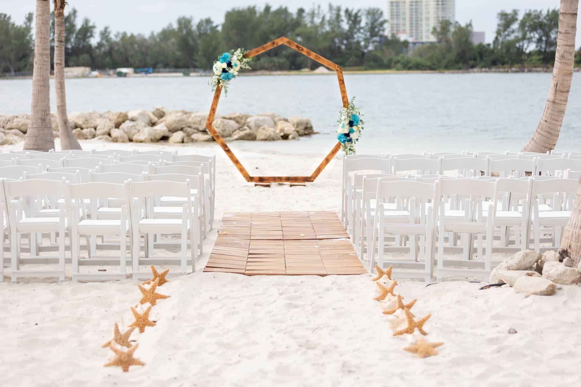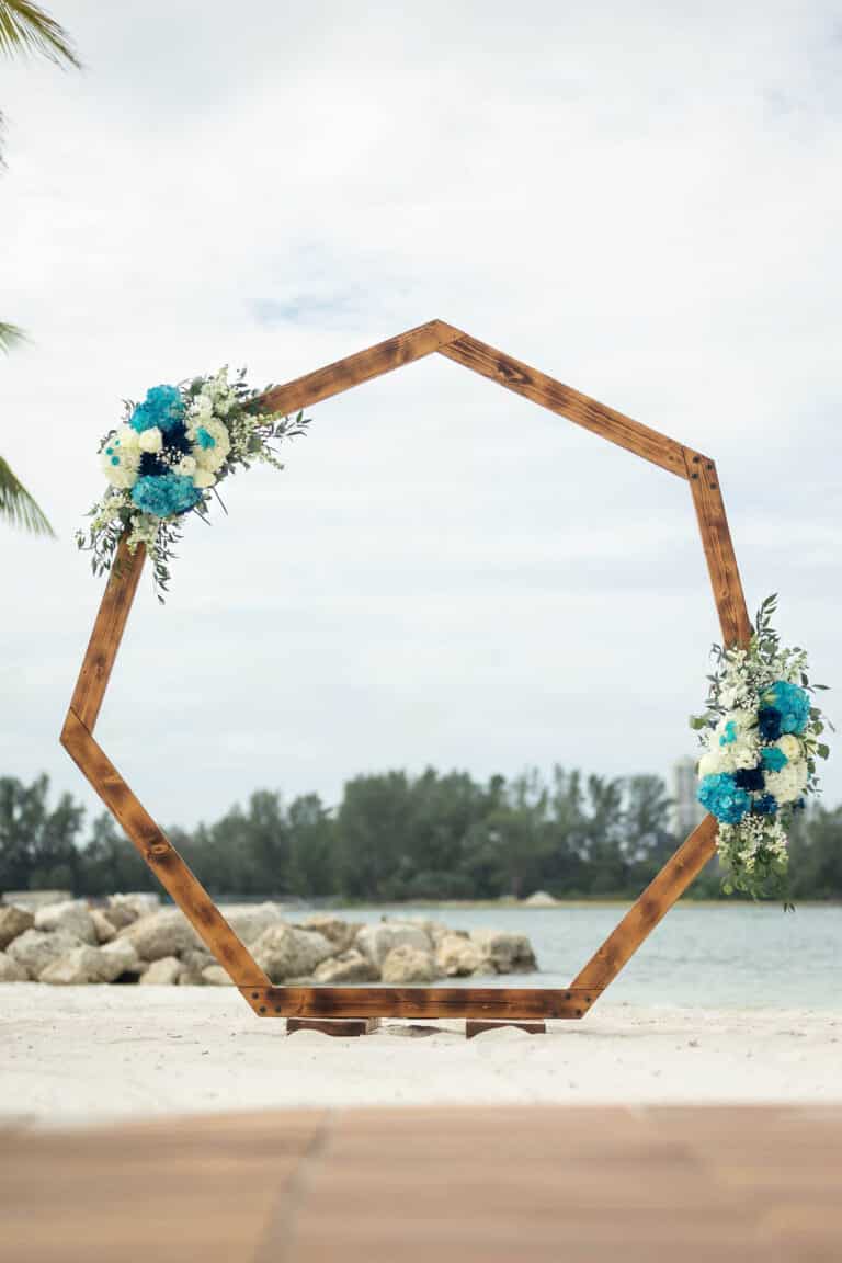 Isn’t Hannah, our Heptagon arch, ravishing with her boho arch piece with amazing blooms and pampas grass? Ugh! The possibilities are endless with her! She’s so simple, yet makes a bold statement! Hanna is 7.5 ft. tall by 7ft wide, and this rustic beauty makes the perfect arch or backdrop for any wedding or photo ops area.